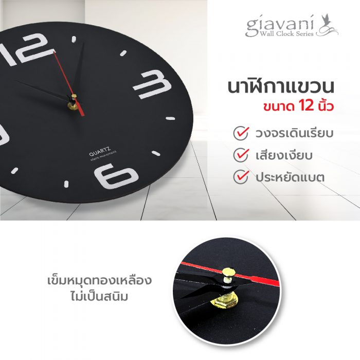 นาฬิกาแขวน 12″ #9798 GV9798 นาฬิกาแขวนทรงกลม สไตล์มินิมอล นาฟิกาแขวนผนัง นาฬิกทรงกลม