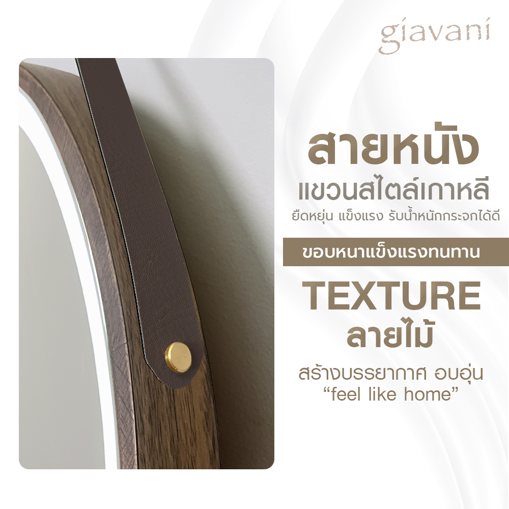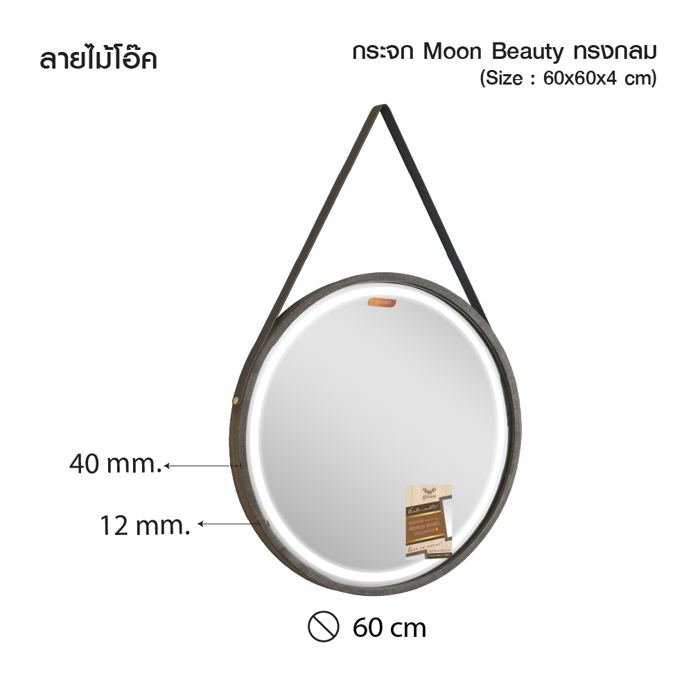 2. กระจก LED Moon Beauty 60 cm สายหนัง-ไม้โอ๊ค GV10100